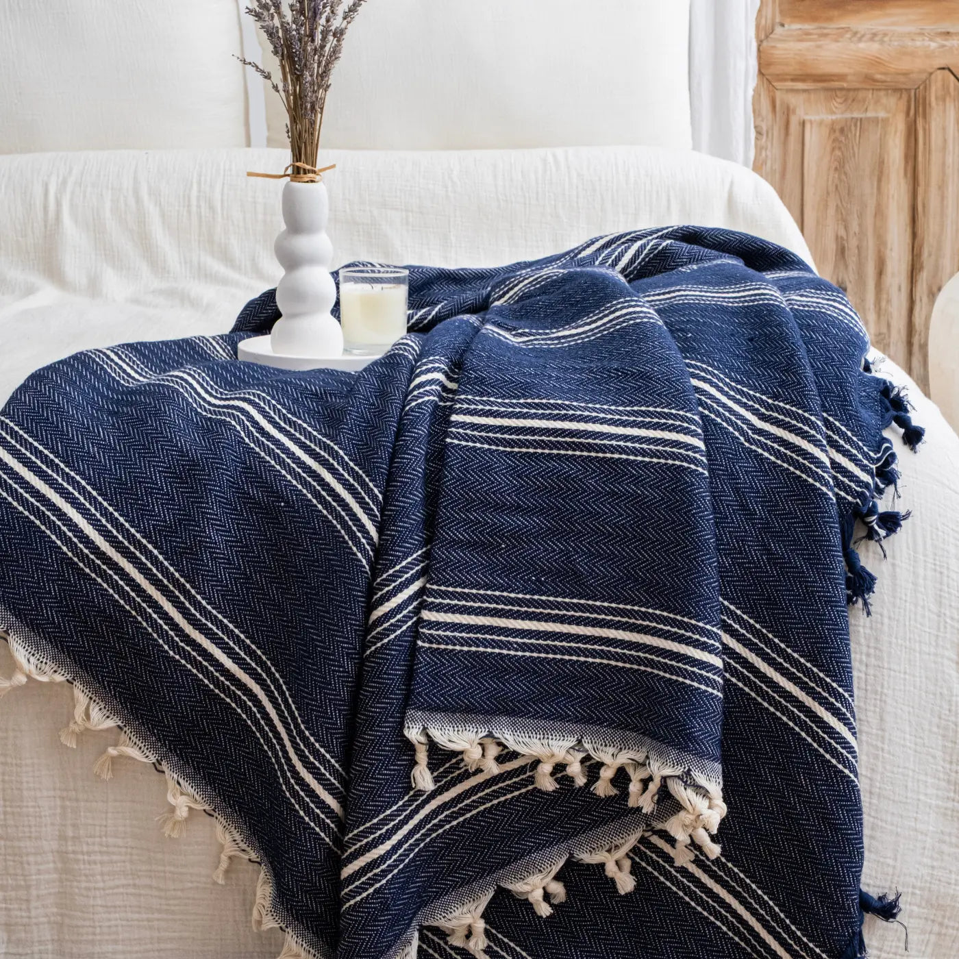 Couvre-lit en coton rayé bleu marine 200x240 cm – parfait en toute saison